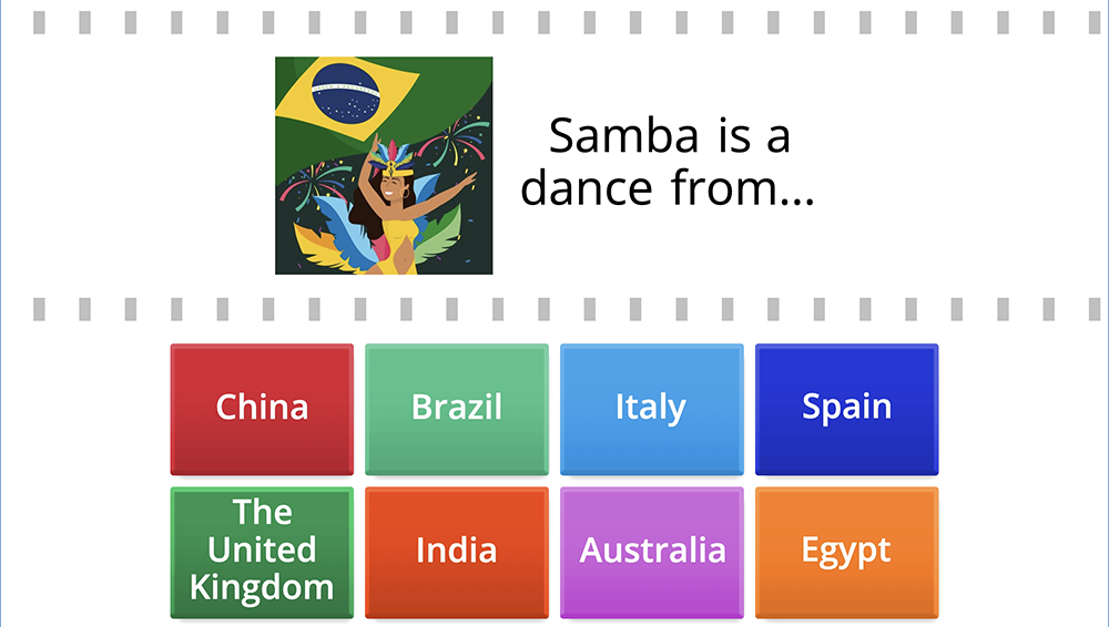 Testează-ți cunoștințele cu un joc interactiv despre țări și simboluri faimoase! Recunoaște țări precum "Australia", "India" sau "The United Kingdom" pe baza unor indicii amuzante și culturale. Jocul este distractiv și educativ, perfect pentru a recapitula vocabularul din lecția despre țări.