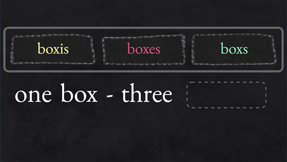 Joacă-te și învață pluralul substantivelor în engleză, alegând forma corectă între variante ca "watchs", "watches" sau "watchis". Jocul te provoacă să identifici regulile gramaticale într-un mod captivant, consolidând ce ai învățat despre adăugarea "-s", "-es" sau transformarea lui "-y".
