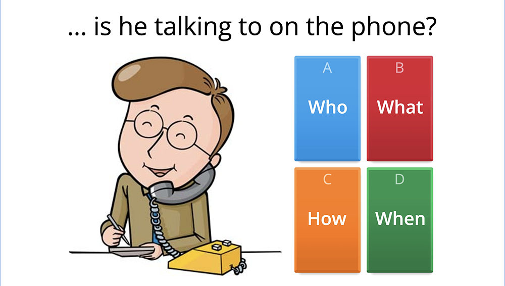 Exersează formularea întrebărilor "Wh-" în acest quiz interactiv. Completează propozițiile cu varianta corectă dintre cuvintele "who", "why", "when", "what", "where" și "how" și dezvoltă-ți gândirea logică și vocabularul în limba engleză.