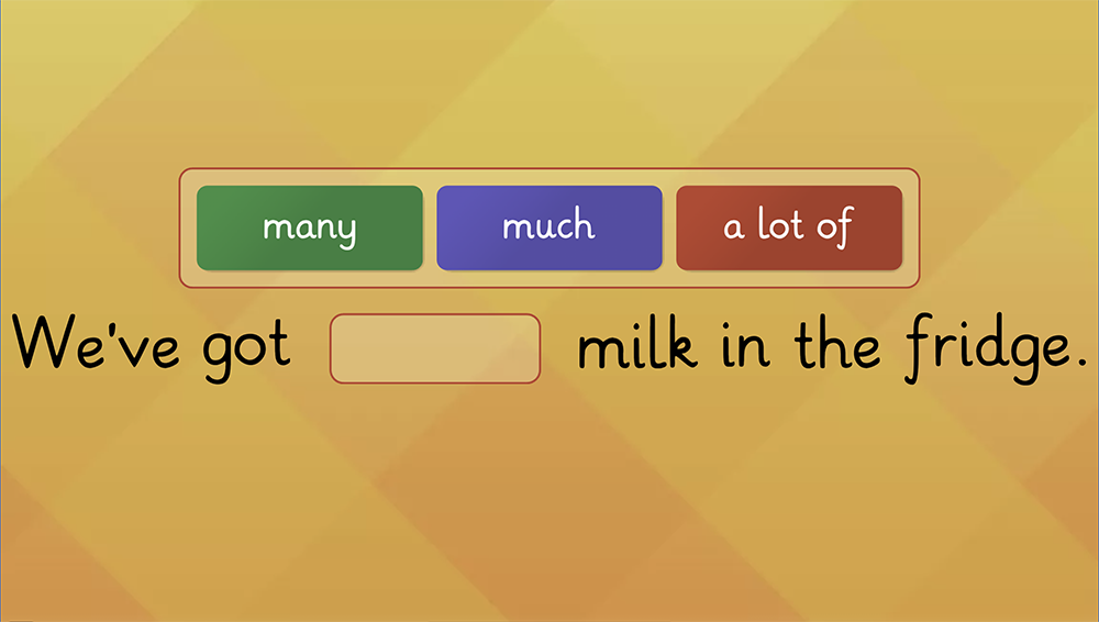 Exersează folosirea cuvintelor "much", "many", "some", "any" și "a lot of" pentru a exprima cantitatea atunci când ne referim la alimente și băuturi. Pune în practică regulile legate de substantivele numărabile și nenumărabile și completează propoziții precum "There is … rice in the kitchen". Jocul consolidează gramatica, fiind perfect pentru a învăța cum să folosești corect aceste cuvinte în engleză.