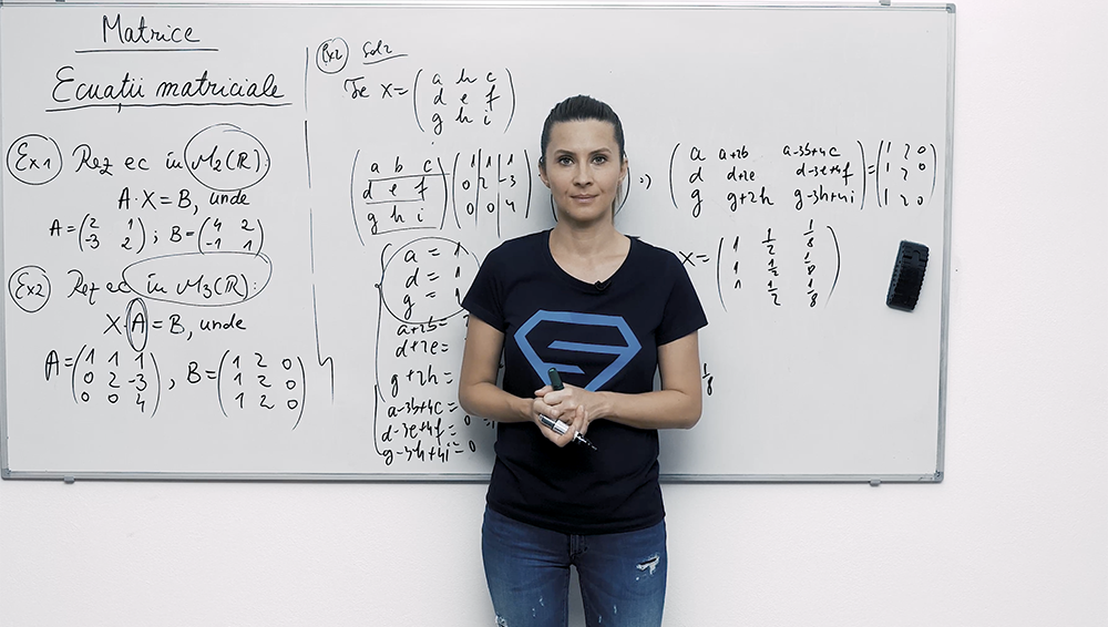Rezolva ecuațiile matriciale prin înlocuire directă: Află când metoda cu inversă nu funcţionează şi cum rezolvi ecuaţia matriceală folosind scrierea generală a matricei X în funcție de dimensiunea ei. Rezolvă sistemul liniar obținut prin egalarea componentelor și revino în X pentru a îi scrie forma dedusă prin calcul. Lecţia include exemple concrete care îţi arată paşii de urmat.