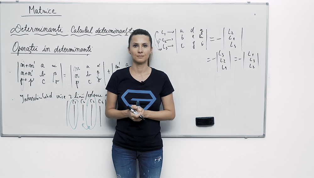 Exemple pas cu pas demonstrează cum să aplici operațiile în determinant pentru a obține zerouri și a simplifica calculul. Vei vedea cum să faci operații algebrice între liniile/coloanele determinantului, să folosești factorul comun într-un mod corect și cum alegerea strategică a operațiilor duce la rezultate imediate. Lecția motivează prin exerciții concrete care consolidează toate tehnicile învățate anterior, astfel vei stăpâni rapid aceste trucuri esențiale pentru subiectele de Bacalaureat la Matematică.