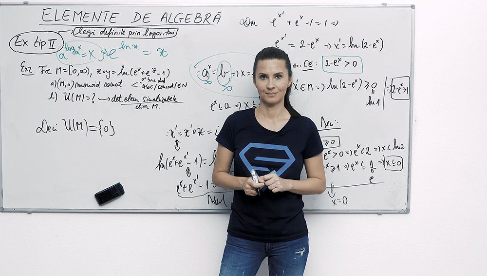 Stabilește că operația x⊙y = ln(ex + ey – 1) definește pe mulțimea M=[0,∞) o structură de monoid comutativ: demonstrăm că operația este bine definită, că este asociativă, comutativă și aflăm elementul neutru. Urmează pașii de calcul și aplică proprietățile logaritmului şi a funcției exponențiale pentru a verifica toate aceste proprietăți. Lecția clarifică relația dintre logaritm și exponențială și modul în care acestea pot defini structuri algebrice, pregătindu-te pentru subiecte de Bac, subiectul II.2.