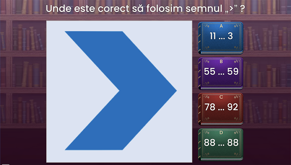 Un joc rapid și amuzant unde copiii aleg semnul „>”, „<” sau „=” corect între două numere. Exersăm rapid gândirea matematică și spiritul de observație!