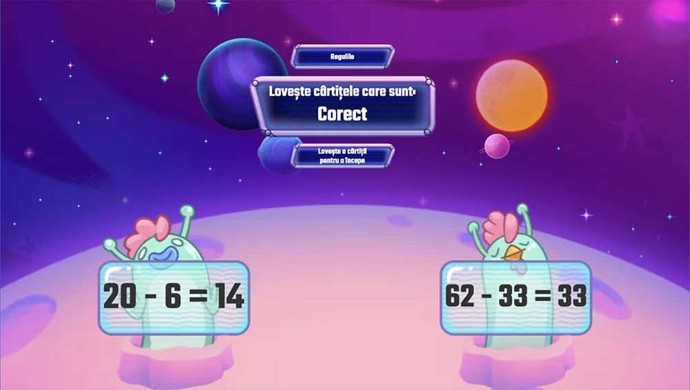 Verifică-ți cunoștințele la scăderi cu trecere peste ordin într-un joc de corect sau incorect! Răspunde rapid la calcule și exersează scăderile simple și complicate într-un mod captivant și vesel.