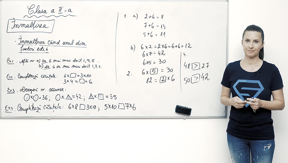 Înmulțire cu 6 și comutativitatea produsului devin clare în această lecție video. Vei exersa tabla înmulțirii cu 6, adunând repetat de șase ori fiecare număr de la 1 la 10 și apoi invers, pentru a vedea că 6×a = a×6. Exemplele pas cu pas te ajută să memorezi rapid și să înțelegi de ce funcționează regula comutativă pentru înmulțire.