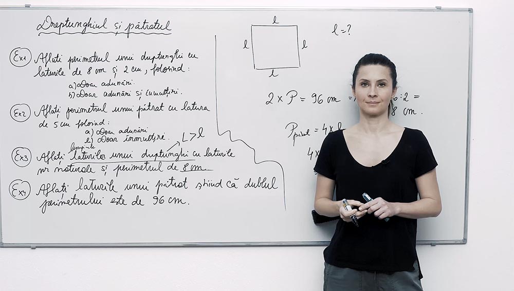 În această lecție video vei învăța pas cu pas cum se calculează perimetrul dreptunghiului și al pătratului folosind doar adunări și apoi adunări cu înmulțiri. Exercițiile explicate vizual te ajută să memorezi formulele 2 X (L + l) și 4 X l, oferind exemple clare pentru a înțelege rapid și corect cum se obține suma tuturor laturilor.