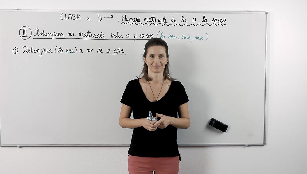 În această lecție de rotunjire a numerelor de două cifre la zeci, vom învăța cum să găsim două numere formate doar din zeci consecutive, să identificăm numarul din mijloc și să decidem corect rotunjirea. Cu exemple simple și pași clari, vei afla când să rotunjești în stânga sau în dreapta. Lecția este explicată pas cu pas, ușor de urmărit.