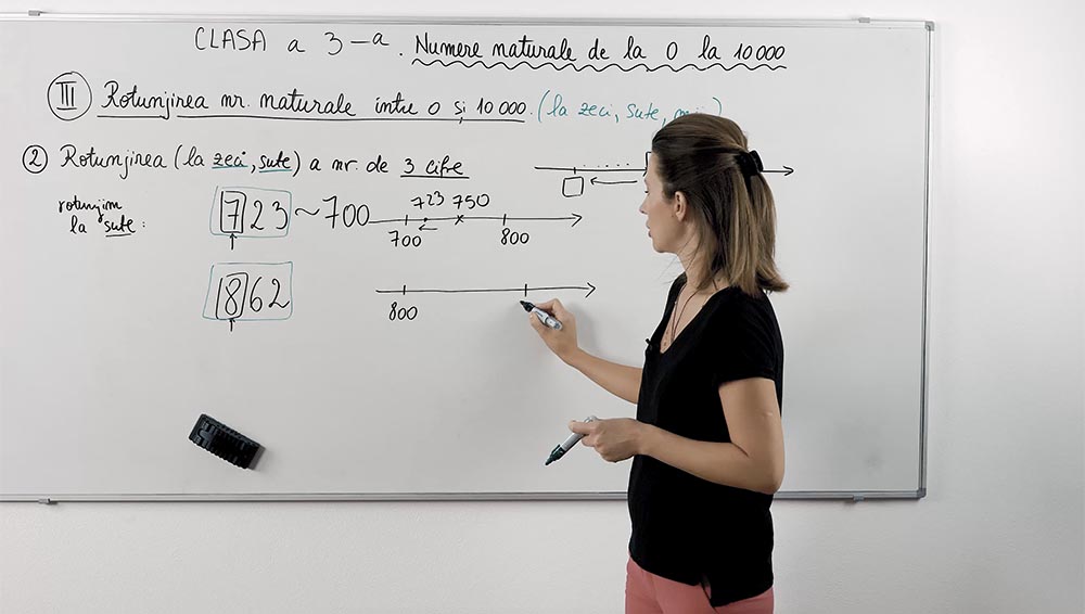 În această lecție despre rotunjirea numerelor de trei cifre la zeci și sute, vei descoperi cum să aplici regulile deja învățate pentru cifre de ordin superior. Vom învăța să identificăm numerele rotunde formate doar din zeci, sute și numerele situate la mijloc, să rotunjim la zeci și la sute, inclusiv situațiile speciale când depășim limita. Lecția detaliată, pas cu pas.