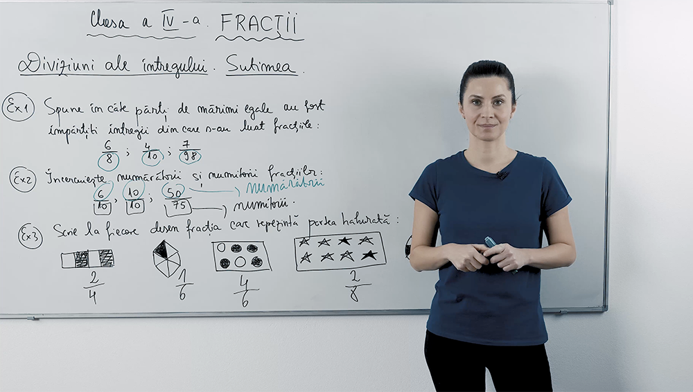 Fracțiile și diviziuni ale întregului sunt explicate pas cu pas, cu exemple simple despre pizza și bomboane. Vei învăța ce reprezintă numărătorul și numitorul și cum se împarte un întreg în părți egale. Lecția video prezintă conceptele de bază într-un mod prietenos, captivant și ușor de urmărit pentru elevi. După teorie, vei rezolva exerciții practice care consolidează înțelegerea.