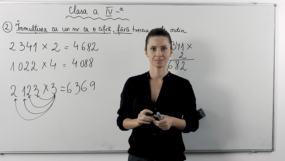 În această lecție video elevii descoperă cum înmulțim când unul din factori este un număr de o cifră, fără trecere peste ordin. Exemplificările pas cu pas arată calculul direct al produsului și modul corect de a scrie rezultatul. Cu explicații clare și exemple practice, copiii înțeleg rapid mecanismul multiplicării fără complicații.