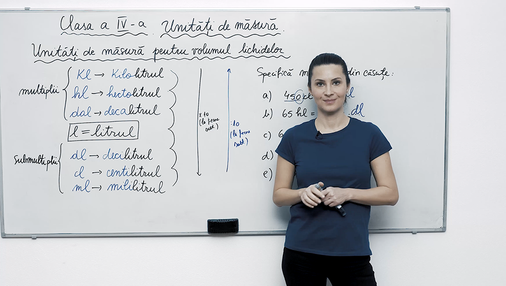 În această lecție video, copiii descoperă unități de măsură pentru volumul lichidelor, de la litrul standard până la decilitru, centiltru și mililitru, precum și la multipli ca dekalitru, hectolitru şi kilolitrul. Prin exemple pas cu pas, vor învăța să adauge și să elimine zerouri pentru a transforma cu ușurință valorile, consolidând înțelegerea relaţiei dintre litri şi submultipli. Lecția folosește un limbaj simplu şi captivant pentru a explica pașii esențiali.