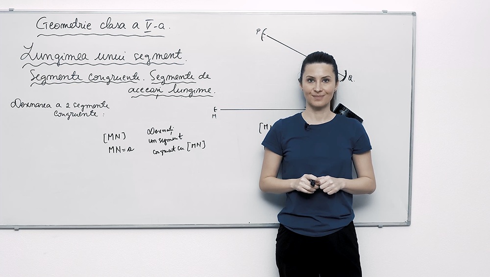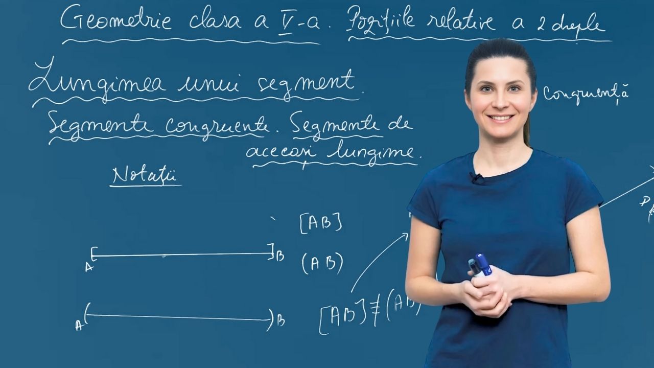 În această lecție video înveți ce înseamnă segmente congruente și cum măsori riguros lungimea unui segment cu rigla sau compasul. Descoperă simbolurile paranteză dreaptă/deschisă, cum construiești segmente de lungime dată și cum determini mijlocul unui segment, pas cu pas, în mod clar și prietenos.