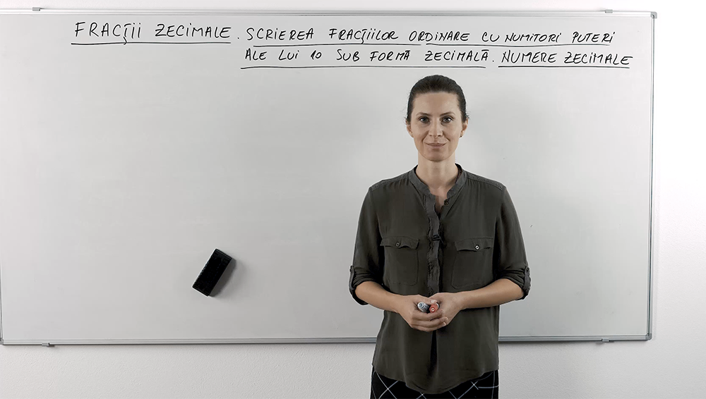 Fracțiile ordinare cu numitor puteri ale lui 10 devin ușor de transformat în fracții zecimale. În această lecție video vei învăța regula plasării virgulei după atâtea cifre câte zerouri are numitorul, completarea cu zerouri în față când lipsește o cifră și citirea corectă a fiecărui număr zecimal. Exemplele cu 1/10, 1/100, 1/1000 şi amplificarea fracțiilor te ajută să înțelegi rapid cum să convertești orice astfel de fracţie.