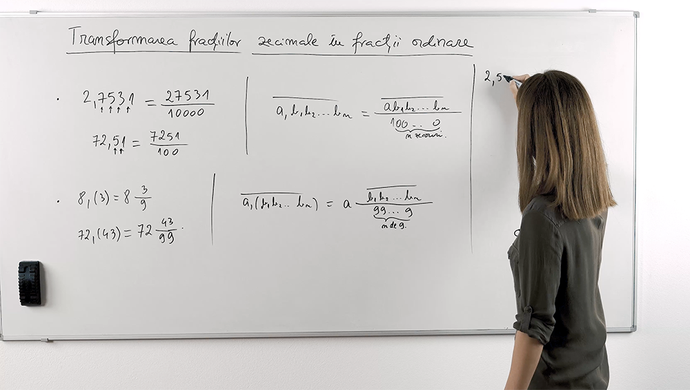 Transformarea fracțiilor zecimale în fracții ordinare se explică pas cu pas în lecția video, ilustrând metode pentru fracții zecimale finite, periodice simple și periodice mixte. Vei descoperi regulile de scriere fără virgulă, folosind la numărator diferențe si la numitor numere formate cu cifrele 9 si 0 după reguli simple. Exemple clare și formule generale te ajută să convertești rapid orice număr în fracție ordinară. Alege tehnica preferată și aplic-o cu încredere la toate tipurile de fracții zecimale.