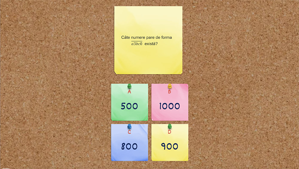 Joc interactiv de exersare a scrierii numerelor în baza 10, cu provocări de completare rapidă a cifrelor. Te testezi pe variante cu cifre pare și impare, construind numere de două, trei sau patru cifre și alegând răspunsul corect dintre patru opțiuni. Feedback-ul imediat te ajută să-ți corectezi greșelile și să înțelegi mai bine cum se compune fiecare număr. Distracție și învățare combinată pentru a-ți testa abilitățile de reprezentare zecimală!