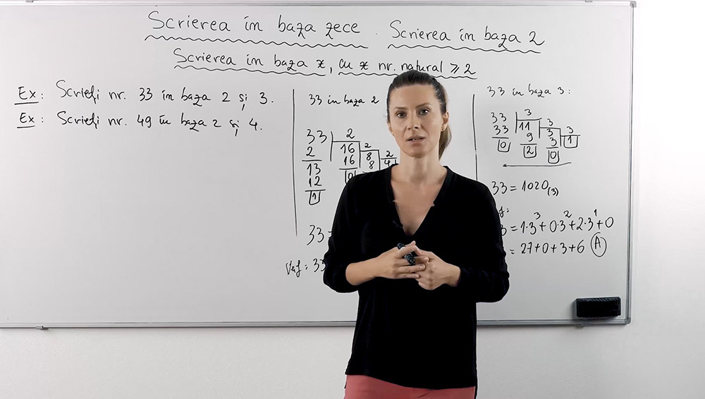 În această lecție video descoperi principiile sistemului binar și ale reprezentării numerelor în orice bază naturală mai mare sau egal cu 2. Vei învăța cum să convertești numere din baza 10 în baza 2, 3, 4 sau x, folosind împărțiri succesive și reguli simple. Exemplele pas cu pas și explicațiile clare te ajută să înțelegi de ce fiecare cifră reflectă o putere a bazei. Cu ajutor vizual și exerciții comentate, deprinzi rapid metoda de conversie și aplici conceptele la probleme variate.