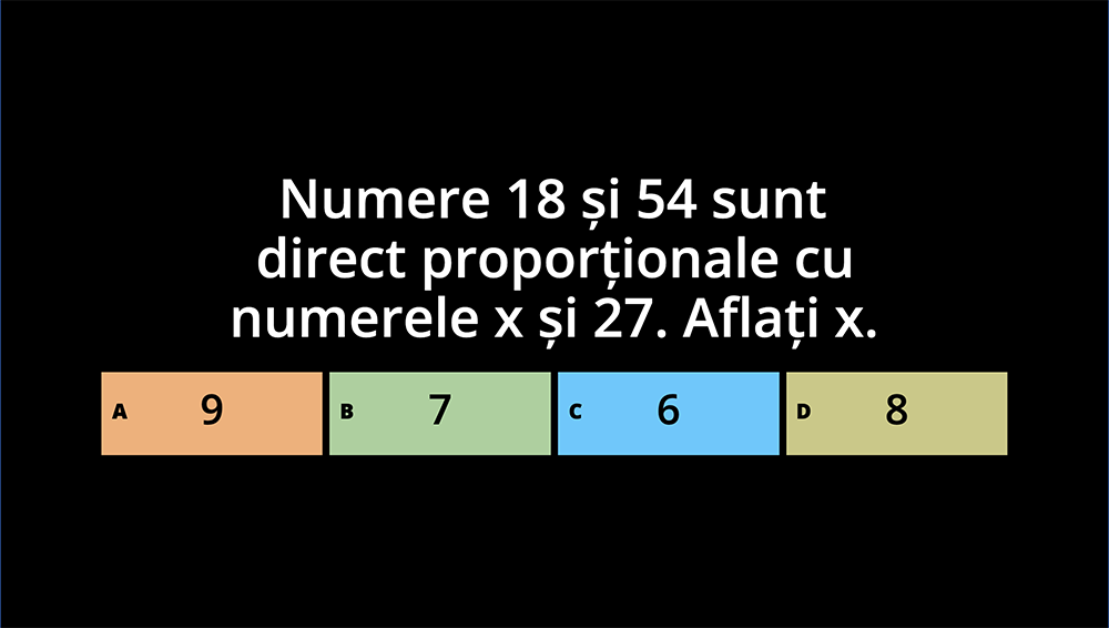 Jocul interactiv de mărimi direct proporționale îți oferă provocări din viața de zi cu zi, ca de exemplu cantități de oxigen consumate, număr de creioane și prăjituri. Exersează regula de trei simplă în niveluri diferite, cu feedback instant pentru fiecare răspuns. Motivațional și distractiv, acest joc te ajută să îți consolidezi rapid cunoștințele despre raport și proporționalitate.
