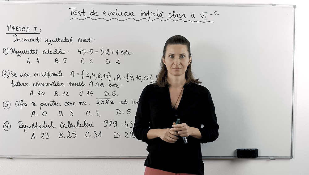 Teste inițiale pentru recapitulearea materiei de clasa a V-a: divizibilitate, fracții zecimale și teorema împărțirii cu rest sunt puse la încercare prin exerciții practice. În acest test video, vei calcula resturi, vei transforma fracții zecimale în fracții ordinare, vei determina cel mai mic număr divizibil cu un altul și vei exersa medii aritmetice și conversii între unități de măsură, cum ar fi între metri și centimetri. Testul îți va arăta cât de bine stăpânești materia până acum.