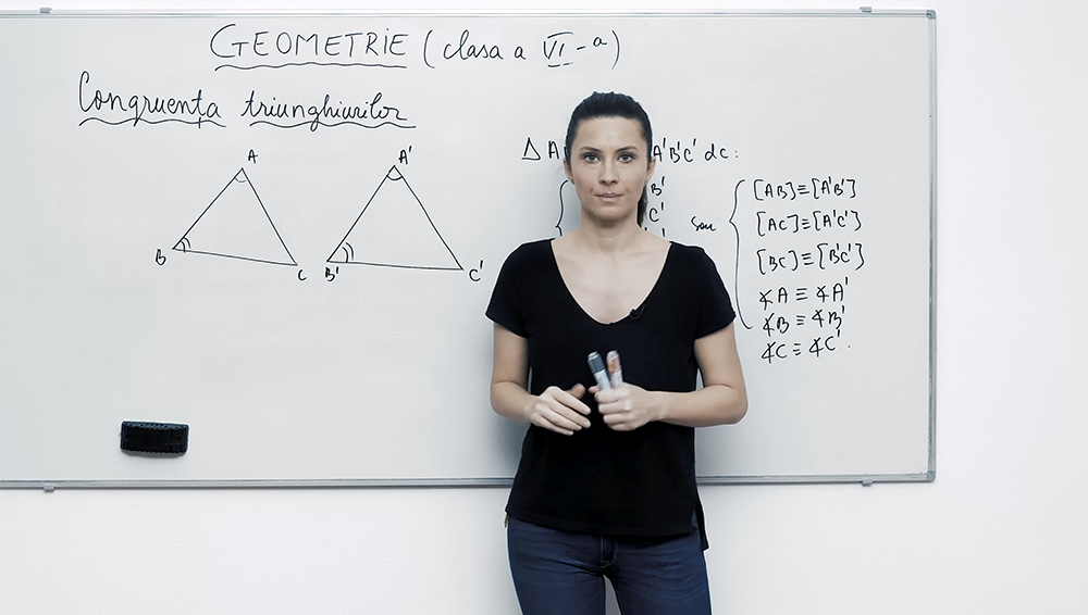 Afli ce înseamnă congruența triunghiurilor şi cum să foloseşti simbolurile pentru laturi și unghiuri. În această lecție video descoperi definiția congruenței a două triunghiuri, relația între segmente egale și unghiuri congruente şi modul de notare. Exercițiile explicate clar îți arată de ce două figuri geometrice se pot suprapune perfect și cum să aplici aceste concepte în exemple concrete.