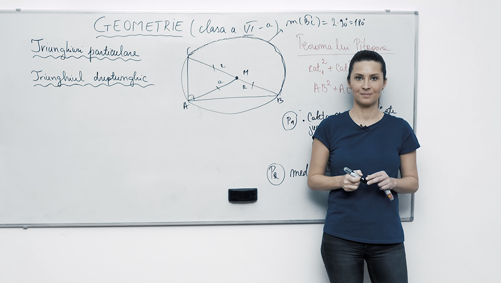 Teorema lui Pitagora, catetele și ipotenuza: descoperă cum se aplică regula sumei pătratelor catetelor ca fiind egală cu pătratul ipotenuzei în triunghiul dreptunghic și de ce cateta opusă unghiului de 30° este egală cu jumătate din ipotenuză. Lecția video simplă și prietenoasă îți explică pas cu pas proprietățile unghiului drept și rolul medianei corespunzătoare ipotenuzei.