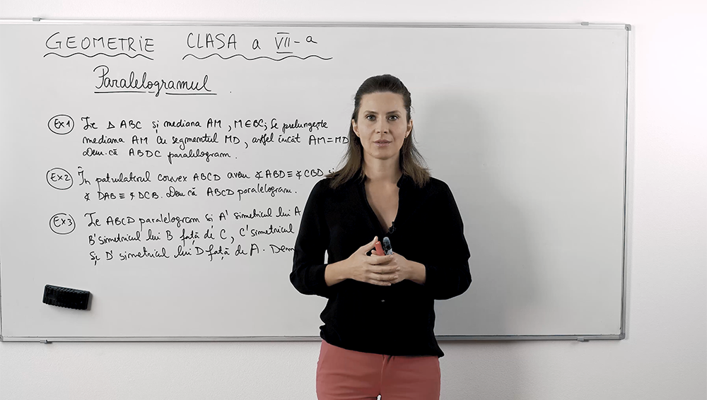 Descoperă semnificația medianei în triunghi și proprietățile esențiale ale paralelogramului într-o lecție video prietenoasă: află cum se construiește mediana, cum se aplică simetria punctelor și care sunt criteriile de paralelism și congruență pentru a demonstra că un patrulater este paralelogram.