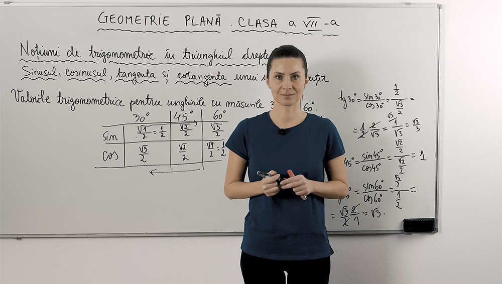 Trigonometrie, unghiurile standard 30°, 45°, 60° și valorile lor de bază pentru sinus și cosinus devin ușor de reținut prin metode vizuale și tabele simple. În această lecție video, elevii descoperă două tehnici eficiente de memorare, cu desene și reguli clare, care le permit să calculeze rapid valorile radicalilor și fracțiilor asociate acestor unghiuri.