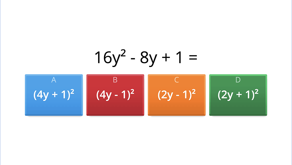 Joc interactiv Formule de calcul prescurtat te provoacă să recunoști și să restrângi expresii la forma (a±b)² sau a²−b². Alege varianta corectă pentru fiecare exercițiu și testează-ți rapid înțelegerea formulelor. Perfect pentru consolidare și evaluare rapidă a progresului.