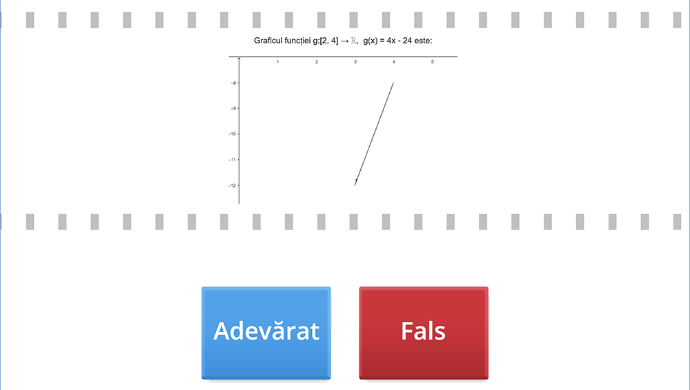 Joc interactiv special conceput pentru a-ți testa rapid și amuzant cunoștințele despre graficele funcțiilor de gradul I și a celor constante. Explorează afirmații despre unghiuri, intersecții și intervale, alege răspunsul corect și vezi-ți progresul pe loc. Perfect pentru a-ți exersa atenția la detaliu și înțelegerea interpretării geometrice!